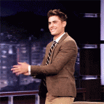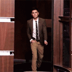Can we just talk about how good he looks? He is at perfect size right now. And that suit is the best suit he’s worn in forever. Brown tweed, tan pants JEANS, and that retro striped tie? Yes please.